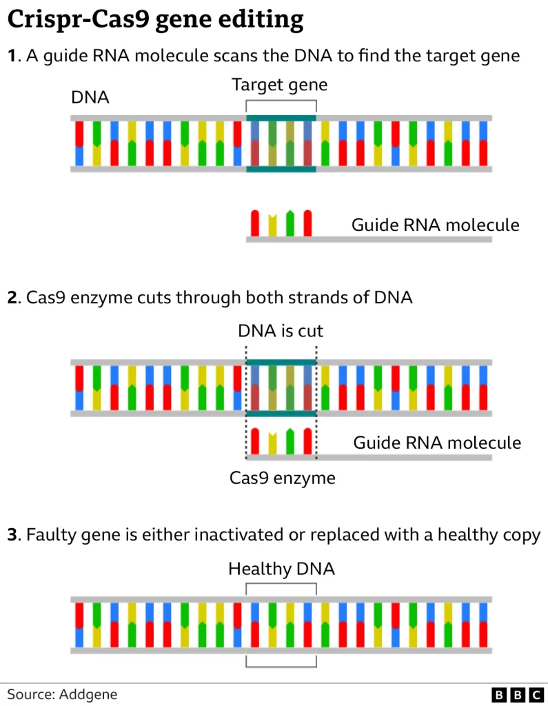 Gráfico que explica cómo funciona la edición del gen Crispr-Cas9